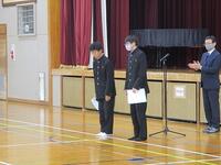 26日(火)に修了式を実施しました。学年の代表生徒に修了書が渡されました。学年代表・生徒会代表の生徒の発表もありました。校長より「知りたいんなあと思うことを大切にすること。春休みの9日間を学びのチャンスにする」の2点についての話がありました。