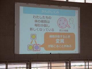 20日(火)1年生は、本校養護教諭より「がん教育」について学習しました。