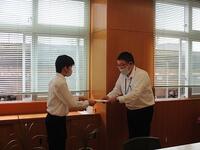 本校生徒会が中心となって、能登半島震災の募金を実施し、集まった募金を新富町の社会福祉協議会に本日渡しました。生徒会が考え、自分たちで行動した活動でもあります。