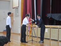 9日(木)に全校集会を行いました。表彰と教育実習生の紹介でした。