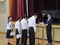 13日(木)に全校集会で表彰をしました。地区中体連総合及びこれまでの大会の表彰でした。また宮崎県で行われる国スポの強化選手に体操競技の生徒が選ばれて認定証を渡しました。