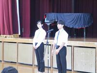 12日(金)の午後に、全校オリエンテーションを実施しました。学校生活について、専門委員会が説明をしました。実演もあり、分かりやすく説明していました。