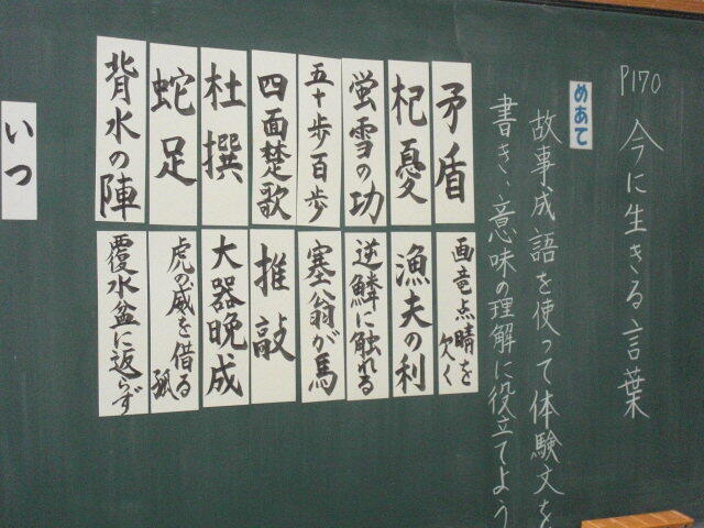 町の展示会に出品していた書道作品です。今は校内に展示しています。