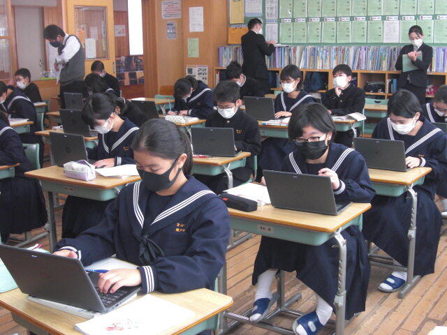 臨時休業などで登校ができない場合でも生徒の顔を見て状況を確認できたり、先生や友達の顔を見ながら一緒に勉強をしたりできるなど、オンライン学習の利点を活用するために、今後も町教委と連携しながら改善を加えていきたいと思います。また、他の学級や学年にも順次広げていく予定です。