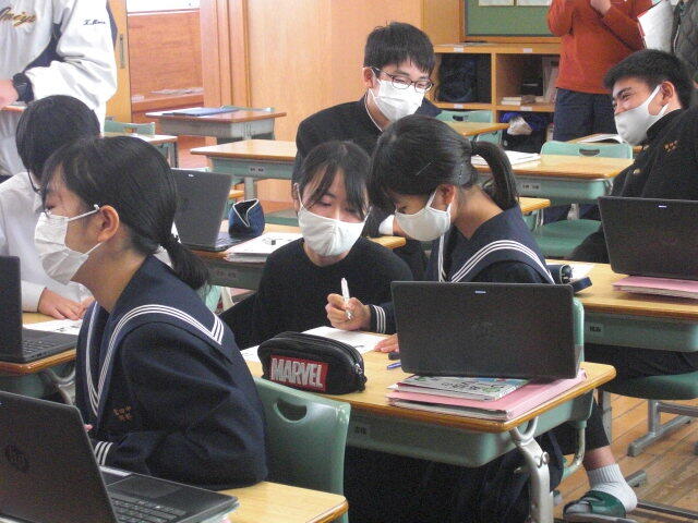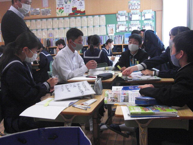 教育委員会の方をお迎えして、授業参観や授業の振り返りを行います。7月・10月に続いての第3回で、最終回となりました。特に、1校時の研究授業は、締めくくりに相応しい充実した内容でした。