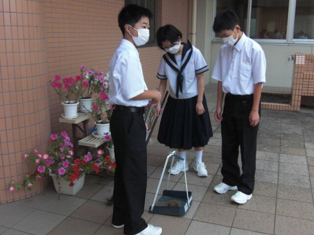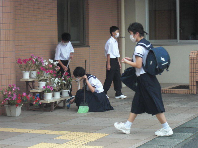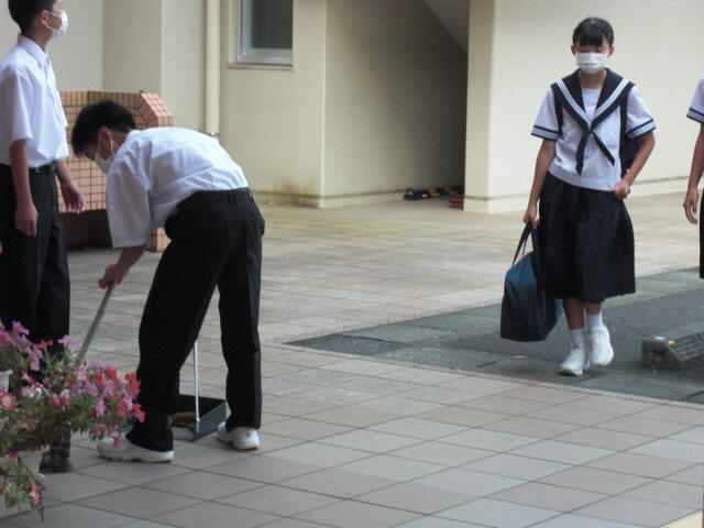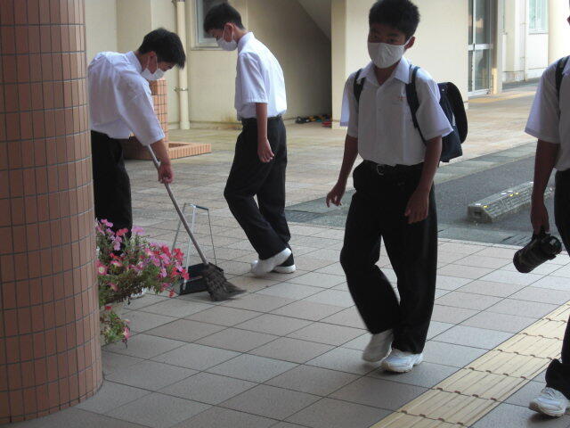 生徒会美化委員会の生徒が交代で朝の美化活動をしてくれています。今は1年生ががんばっています。