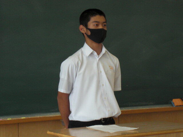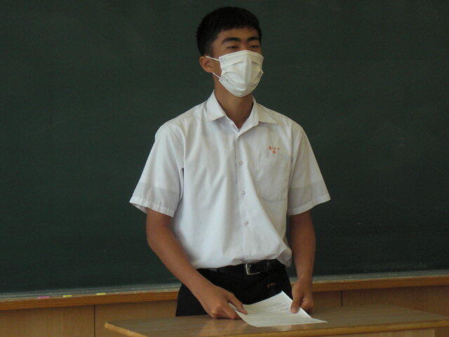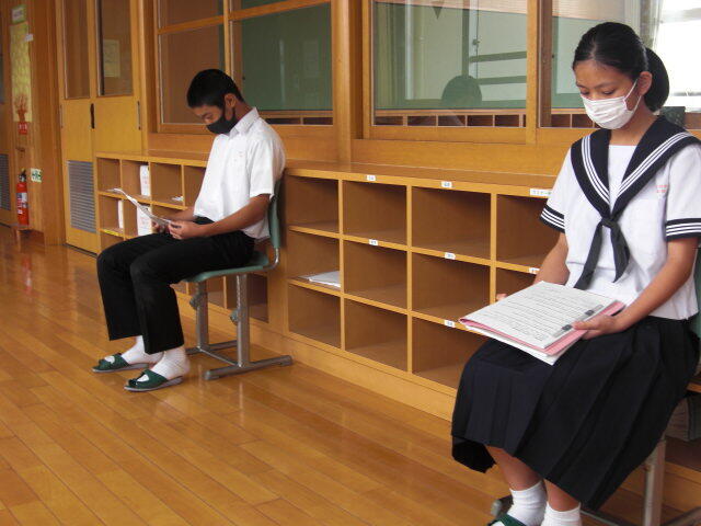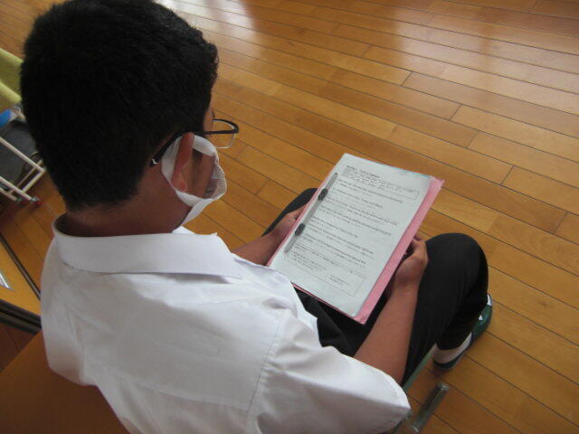 3年生が英語の暗唱テストを行っています。2学期に実施される児湯地区中学生英語暗唱弁論大会に向けて、校内のオーディションも兼ねています。
