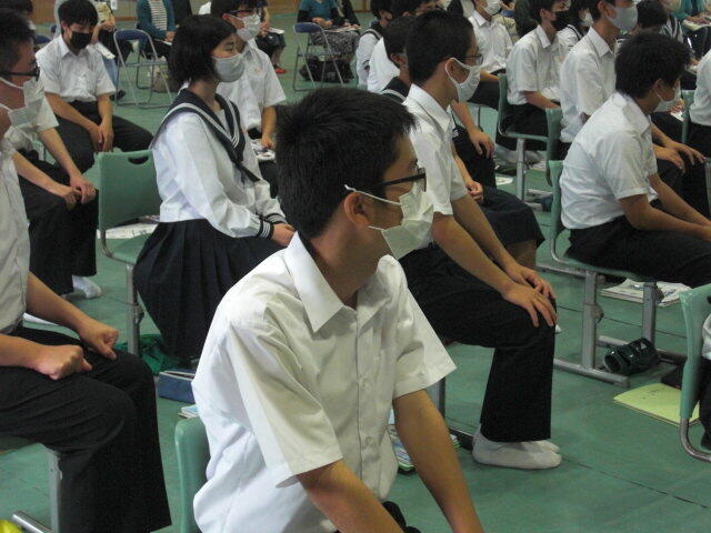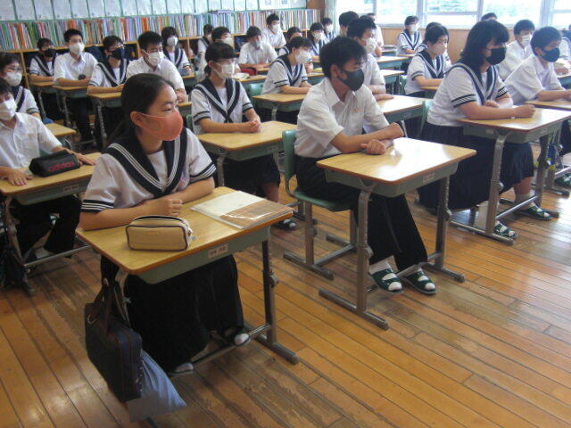 3年生と、その保護者を対象にした高校説明会を実施しました。今日は、宮崎大宮高校・宮崎南高校・宮崎北高校・宮崎商業高校・鵬翔高校・宮崎学園高校・宮崎第一高校の7校に来ていただきました。第2回を7月9日(金)の参観日に実施する予定です。