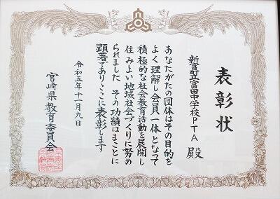 8日(水9~10日(金)宮崎市民文化ホールを中心で開催れた第65回全国社会教育研究大会宮崎大会の最終日(10日:木)に社会教育優良団体として、本校PTA活動が表彰されました。PTA会長が代表で表彰に参加しました。日頃からのPTA活動の賜のです。今後とのPTA活動への協力をよろしくお願いします。
