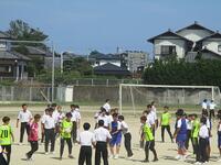 22日(金)、昨日に引き続き、ヴィアマテラスの選手が来校しました。昼休みにはドッチボールをしていただきました。笑顔あり、笑いありの楽しい時間で、見ていた生徒も笑顔になり、笑顔の花が咲いた昼休みになりました。24日(日)の公式戦、頑張ってください。この公式戦に、本校の吹奏楽部がハーフタイムに演奏します。また、ボールボーイとして、サッカー部の生徒がボランティア活動を行います。
