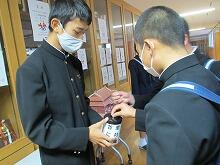 「首里城復興支援のための募金活動」を今朝も行いました。2日間の活動でしたが、13,825円の募金が集まりました。製作した生徒と担任が集計し、窓口になっている銀行に先ほど振り込みました。集計を済ませた後、生徒から出た「この募金の重さはみんなの気持ち」ということばがとても印象的でした。