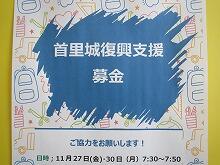 ペーパークラフトの首里城を授業で生徒がつくりました。この作品に込めた思いを生かし、復興支援に協力するために、「首里城復興支援募金活動」を製作した生徒と生徒会執行部が行いました。今朝は、登校してきた多くの生徒が活動に協力していました。