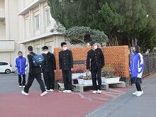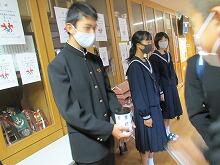今朝学校の鍵を開けるときの温度は-1℃、この冬一番の寒さでした。生活委員会の今月の取組は「朝のあいさつ運動」です。正門に並び、登校してくる生徒に元気よく声をかけていました。