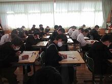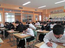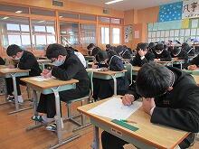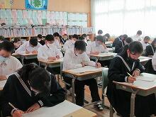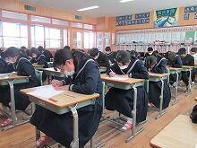 期末テストが始まりました。今日は全学年、国語、理科、英語のテストを受けました。県立高校入試を考慮し、明日は社会、数学の2教科のテストを受けます。