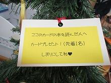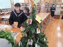 富田中学校図書館では、「読書活動の推進のため」に配架や室内掲示物の工夫、イベントの実施などを行っています。12月はクリスマスツリーを置き、来館者は飾ってあるしおりがもらえます。