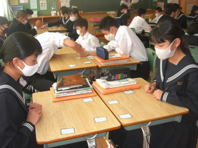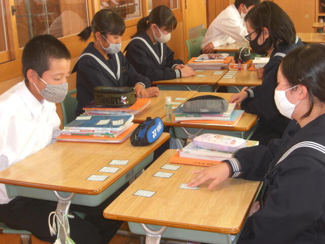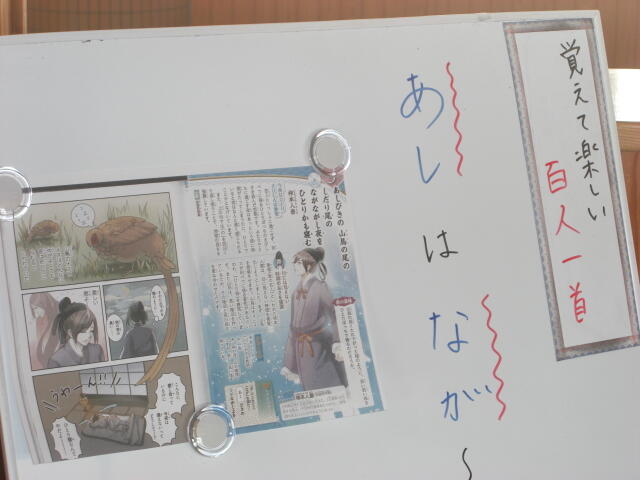 1年生の国語の授業で百人一首をやっていました。百人一首に興味をもたせたり、暗記するためのきっかけづくりも工夫されていました。「生徒の心に火をつける」、教師の腕の見せ所です。