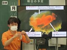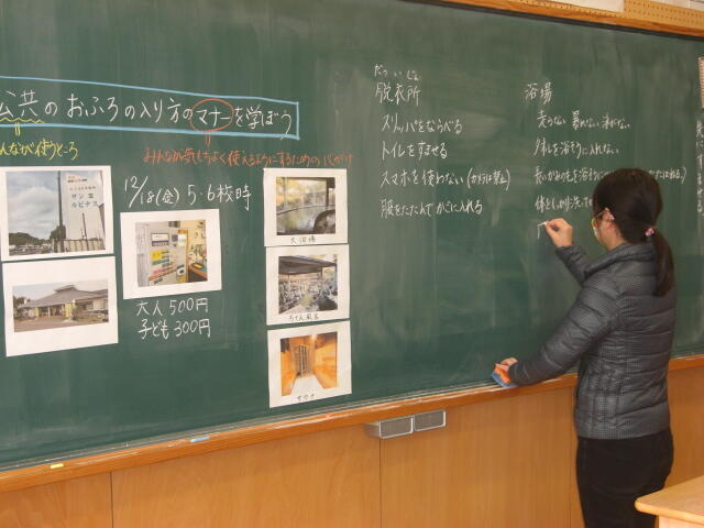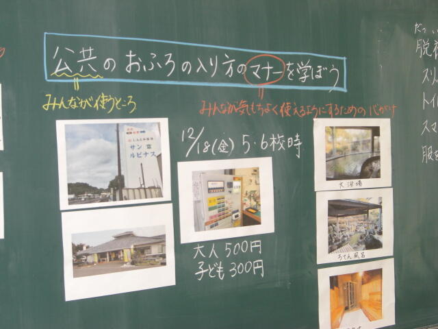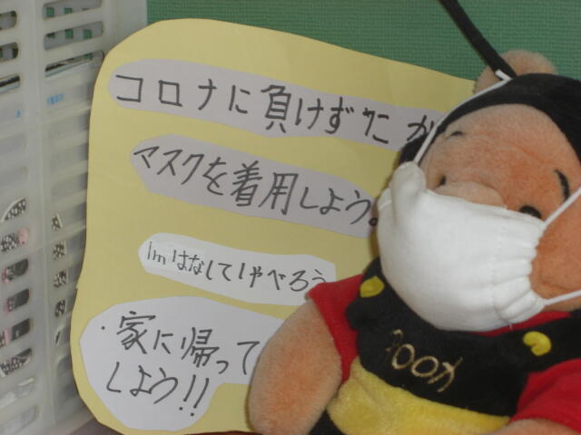 ↓ 授業参観の途中で見た板書です。生徒に分かりやすいように、       ↓左の学級の啓発です。マスクをしようと