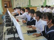 校内だけではなく、受検した生徒全員の中での順位も分かるテストです。1年生も学級活動で中学校卒業後の進路の勉強も始めています。中学校進学と違い、”行きたい高校”に進学するためには、入学試験での合格が必要です。これから高校受験に向けて勉強する上で、参考になると思います。結果は2学期の終わり頃に届く予定です。