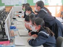 1年生の技術の授業では、コンピュータを使っています。これまでに基本的な使い方やキーボードの使い方などを学習し、この時間は簡単なCADをしていました。子どもたちは自分がデザインした本立てや小物入れを興味深そうに見たり、画面上で回転させたりしてCADの操作も楽しんでいました。