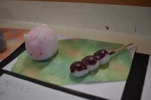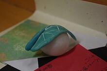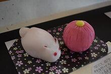 2年生が美術の授業で制作した作品が校舎3階の廊下に展示してあります。作品は、粘土で作った「和菓子」です。
