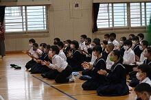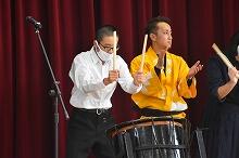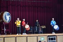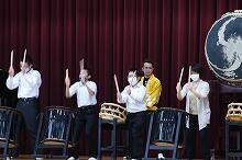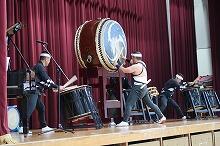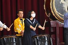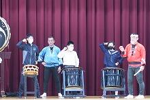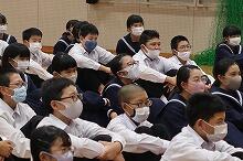 橘太鼓「響座」にお越しいただき、体育館で鑑賞教室を行いました。本来は全校生徒が一緒に鑑賞するところですが、体育館での密を避けるために、今回は2・3年生徒と1年生に分けて、2回の講演をしていただきました。