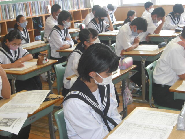 5校時の学級活動で、1年生も高校の名前や学科などを学んでいました。県教育委員会作成のリーフレット(下の写真)が届きましたので、これを使って勉強していました。リーフレットは家庭に持ち帰りますので、ご覧ください。