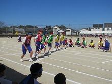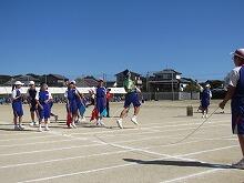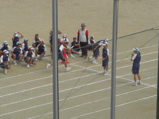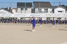 来週末の日曜日(10月11日)に体育大会を開催します。今日の午後は全校体育を行い、グラウンドで開会式と閉会式の練習、徒走やリレーのスタート位置の確認、応援練習などを行いました。