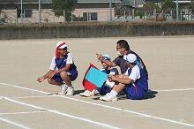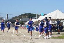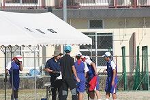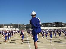 今週末(10月11日、日曜日)に体育大会を開催します。雲一つ無い、快晴の空の下、今日は予行練習を行いました。予行練習では、プログラムどおりに種目を行うことと併せて、役員になっている生徒の動きも確認しました。