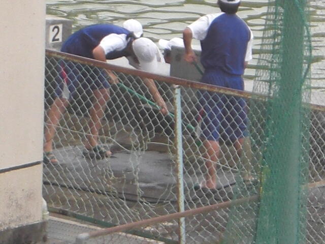 昨日今日と梅雨とは思えない強い日差しで屋外にいると暑さを感じます。その雲一つないの青空の下、グラウンドでは、体育の授業でリレー行うためのライン引きと、子どもたちのために草刈りをする姿がありました。
