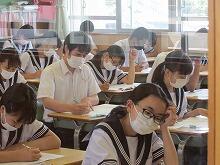 今日はその推戴式を行いました。例年は体育館に全校生徒が集まり、ユニフォームに着替えて行いますが、今回は校内放送を使い、各部のキャプテンやクラブの代表者が抱負を述べ、その後、生徒会代表の激励の言葉、校長先生の話、選手宣誓を行いました。また、各部・各クラブの抱負を述べる際には、教室にいる部員やクラブメンバーは起立し、「お願いします」と声を合わせていました。