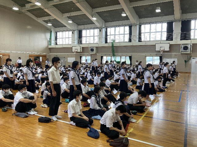 令和4年度の生徒総会が行われました。今回は、全体討議Ⅰ(学級討議)はオンラインで進めました。全体討議Ⅱ(全校での話合い)は、マスク着用のうえ、体育館で行いました。
