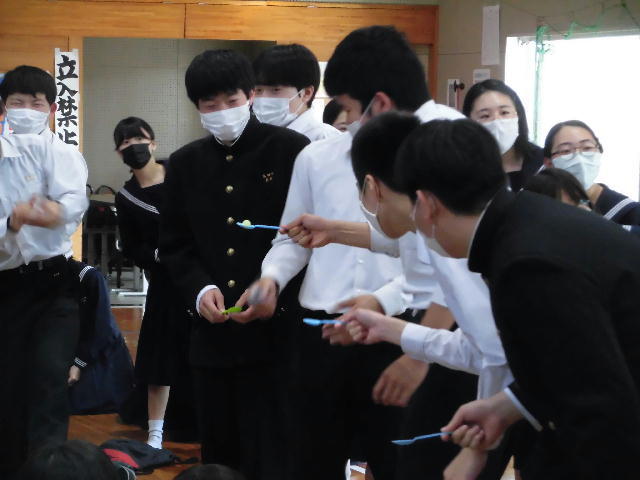 3月10日に、生徒会による送別集会を行いました。各学級対抗のゲーム、メッセージビデオ紹介が行われました。思い出を振り返る楽しい時間になりました。