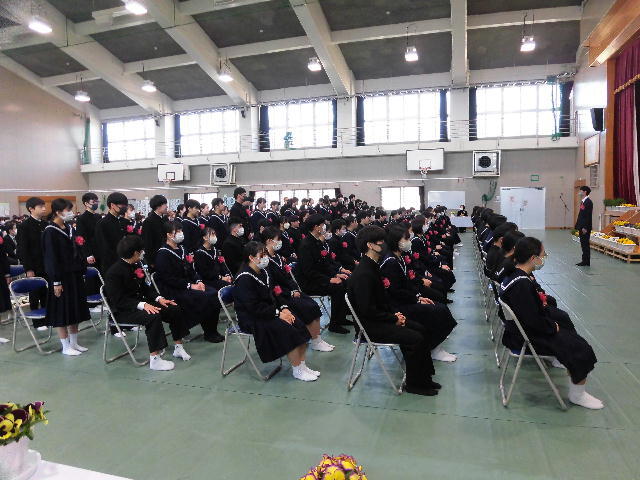 3月16日に第76回富田中学校第76回卒業式を行いました。新富町長 小嶋崇嗣 様、教育長職務代理者 児玉和子 様、PTA会長 羽田野治 様、多くのご家族の皆様のご臨席のもと、卒業生106名がそれぞれの道へ旅立っていきました。式の最後で、熱い熱い歌声が体育館に響き渡りました。卒業生の皆さん、それぞれの道で頑張ってください。卒業おめでとうございます。
