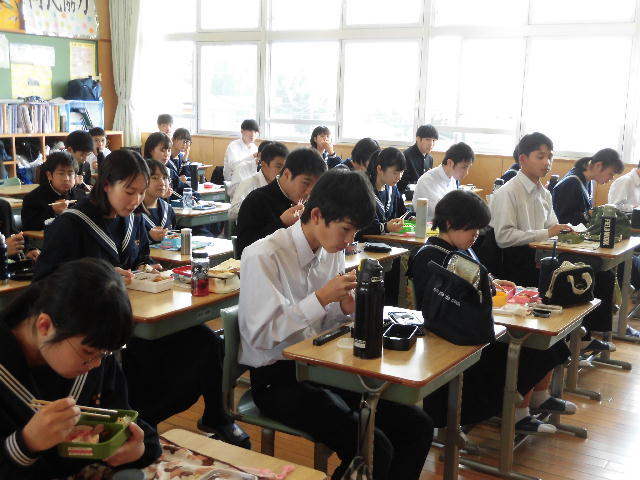 3月10日は午後からの送別行事にあわせて「弁当の日」でした。それぞれの手作り弁当を食べました。