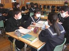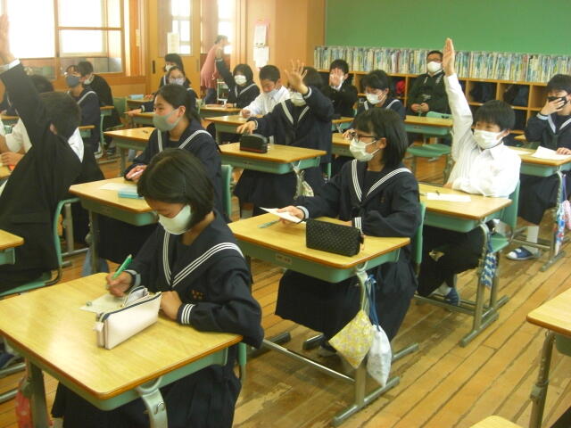 各学級で道徳の授業も計画的に行っています。教材(資料)や登場人物なども、生徒に親しみのあるものが多くなってきました。