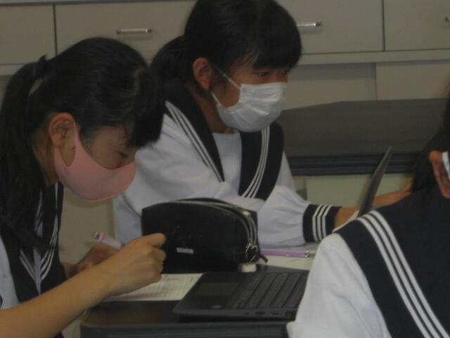 キャリア教育として、1年生がインターネットを使い、仕事調べを行いました。将来の自分の仕事をまだ決めていない生徒もいるため、今回は「○○に関する仕事」や「興味をもった仕事」など、幅広く仕事や職業を調べました。生徒は楽しそうに調べ、プリントに記入していました。