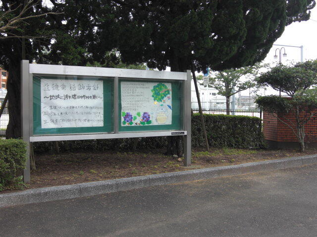 6月に入りました。正門横の掲示板も模様替えしました。生徒の作品です。