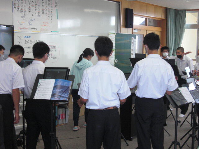 3年1組の音楽です。まだ大きな声では歌えませんが、一生懸命にパート練習をしていました。3年生の音楽の授業は残りわずかです。1時間1時間を大切にしてほしいと思います。音楽室のホワイトボードや掲示物の工夫にも注目してください。
