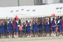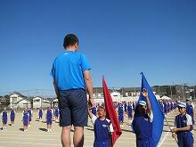 来週末の日曜日(10月11日)に体育大会を開催します。今日の午後は全校体育を行い、グラウンドで開会式と閉会式の練習、徒走やリレーのスタート位置の確認、応援練習などを行いました。
