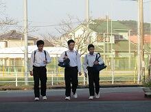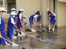 今日は朝からよく晴れ、澄み渡る青空の下、練習を行い、生徒の元気な姿や団長・リーダーなどの積極的な姿を見ることができました。練習後は、箒(ほうき)を手に持ち、生徒玄関を自主的に清掃する3年生の姿がありました。
