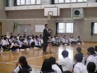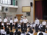 1日(木)に3日(土)から開催される地区中体連総合体育大会の選手推戴式を実施しました。出場するチームからキャプテンが決意を述べました。その後、生徒代表の激励の言葉、校長の激励の言葉、選手宣誓が行われました。日頃の成果が出て、悔いの残らない大会にしてください。声出し応援も可能になりました。応援をよろしくお願いします。