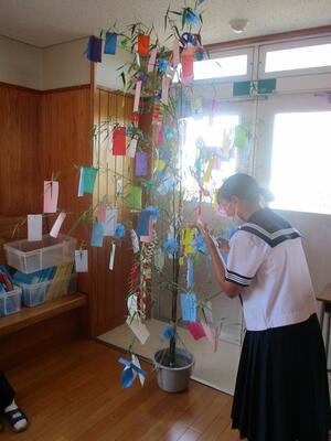 2年生が作成していたのは、七夕飾りでした。みんなの願いが届きますように!