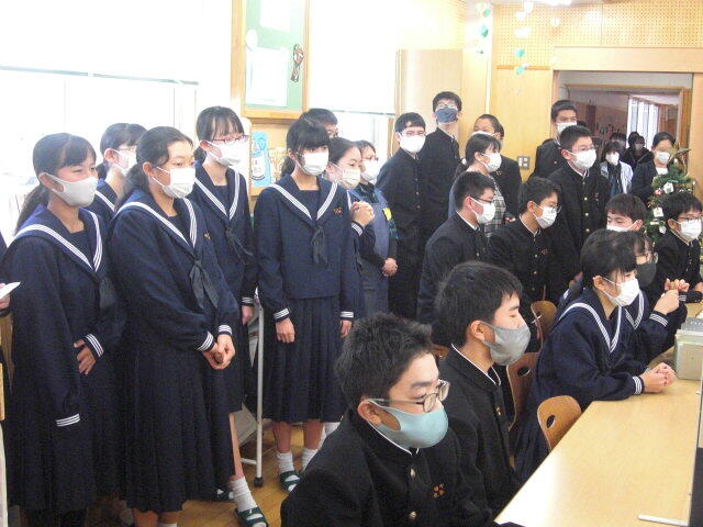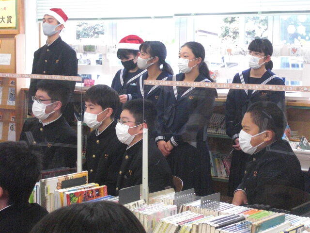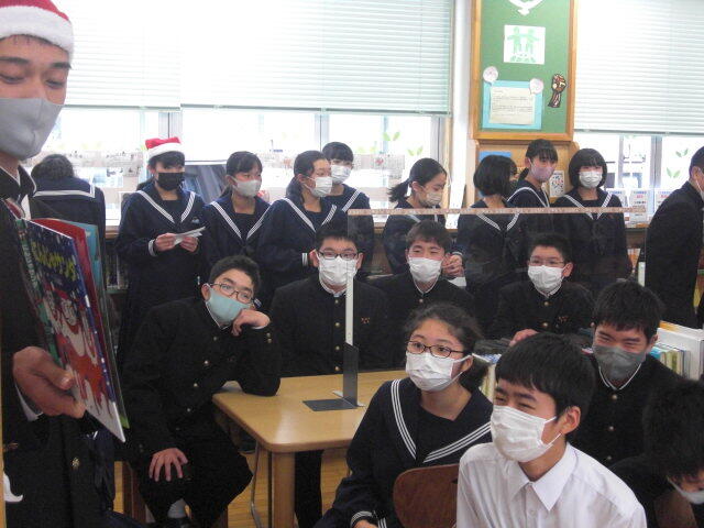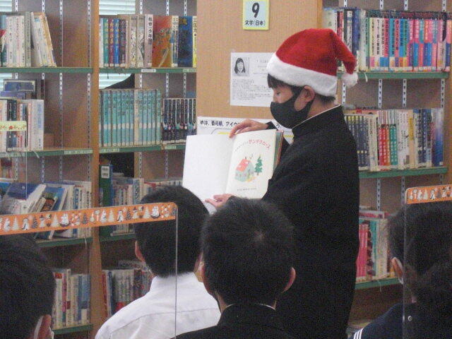 冬休みに読書に親しんでもらうために図書室に生徒を呼び込もうということで、図書係がクリスマスお話会を企画しました。