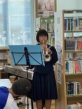 生徒の読書への関心を高めるために、昨日、今日の2日間、昼休みに「クリスマスお話会」を開催し、多くの生徒が図書室を訪れました。今回は、絵本の読み聞かせを図書係の生徒が担当し、吹奏楽部の生徒が楽器を演奏しました。