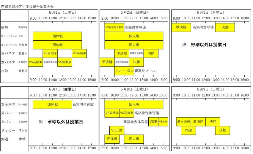地区中体連総合の日程は下記のとおりです。富田中生の活躍を期待します。応援よろしくお願いします。