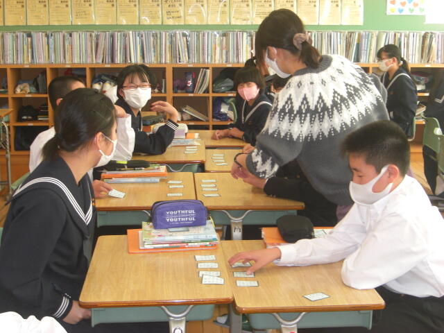 1年生の国語の授業で百人一首をやっていました。百人一首に興味をもたせたり、暗記するためのきっかけづくりも工夫されていました。「生徒の心に火をつける」、教師の腕の見せ所です。