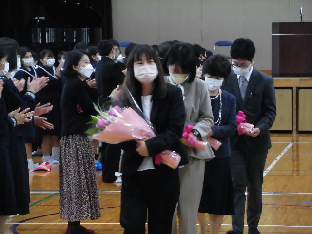 30日(水)に離任式が行われました。今回の定期異動で内之ハ重校長先生を含め、8名の先生が富田中学校を去られることになりました。それぞれの場所で、ご活躍なさることを職員・生徒一同祈っております。