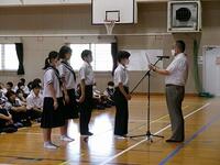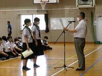 13日(木)に全校集会で表彰をしました。地区中体連総合及びこれまでの大会の表彰でした。また宮崎県で行われる国スポの強化選手に体操競技の生徒が選ばれて認定証を渡しました。