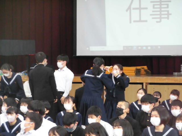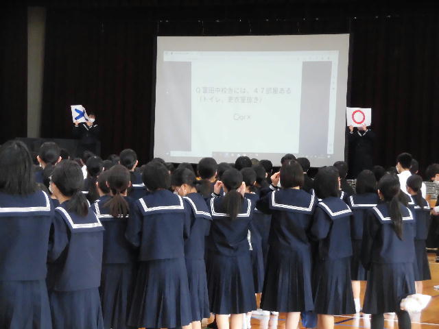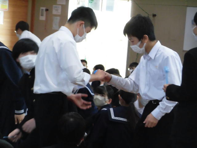 3月10日に、生徒会による送別集会を行いました。各学級対抗のゲーム、メッセージビデオ紹介が行われました。思い出を振り返る楽しい時間になりました。