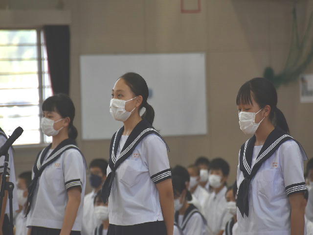 西都児湯地区中学校総合体育大会の選手推戴式を行いました。行進による選手入場から始まる本校ならではの推戴式は、3年生にとっても初めての経験となりました。